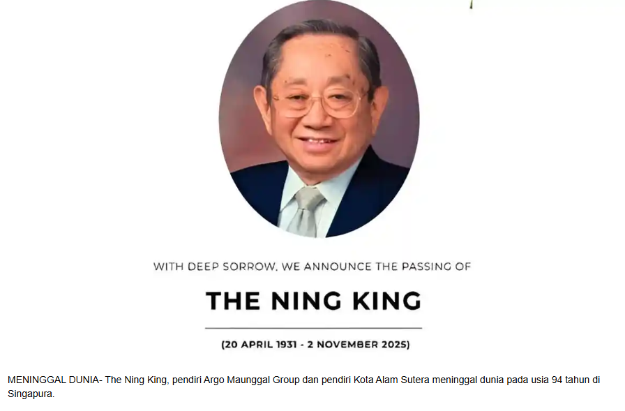 Setelah puluhan tahun berkiprah dalam dunia properti dan bisnis, The Ning King dikabarkan meninggal dunia. Kabar ini diamini oleh Wakil Ketua Umum Apindo Sanny Iskandar.